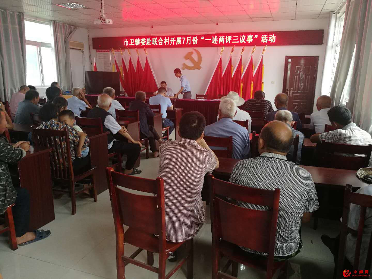 中乡网安徽讯 7月22日下午,安徽省蚌埠市卫健委安排两名班子成员到怀远县贫困村兰桥乡联合村开展“一述两评三议事”活动,该乡党员、群众代表和部分贫困户共50多人参加了活动。