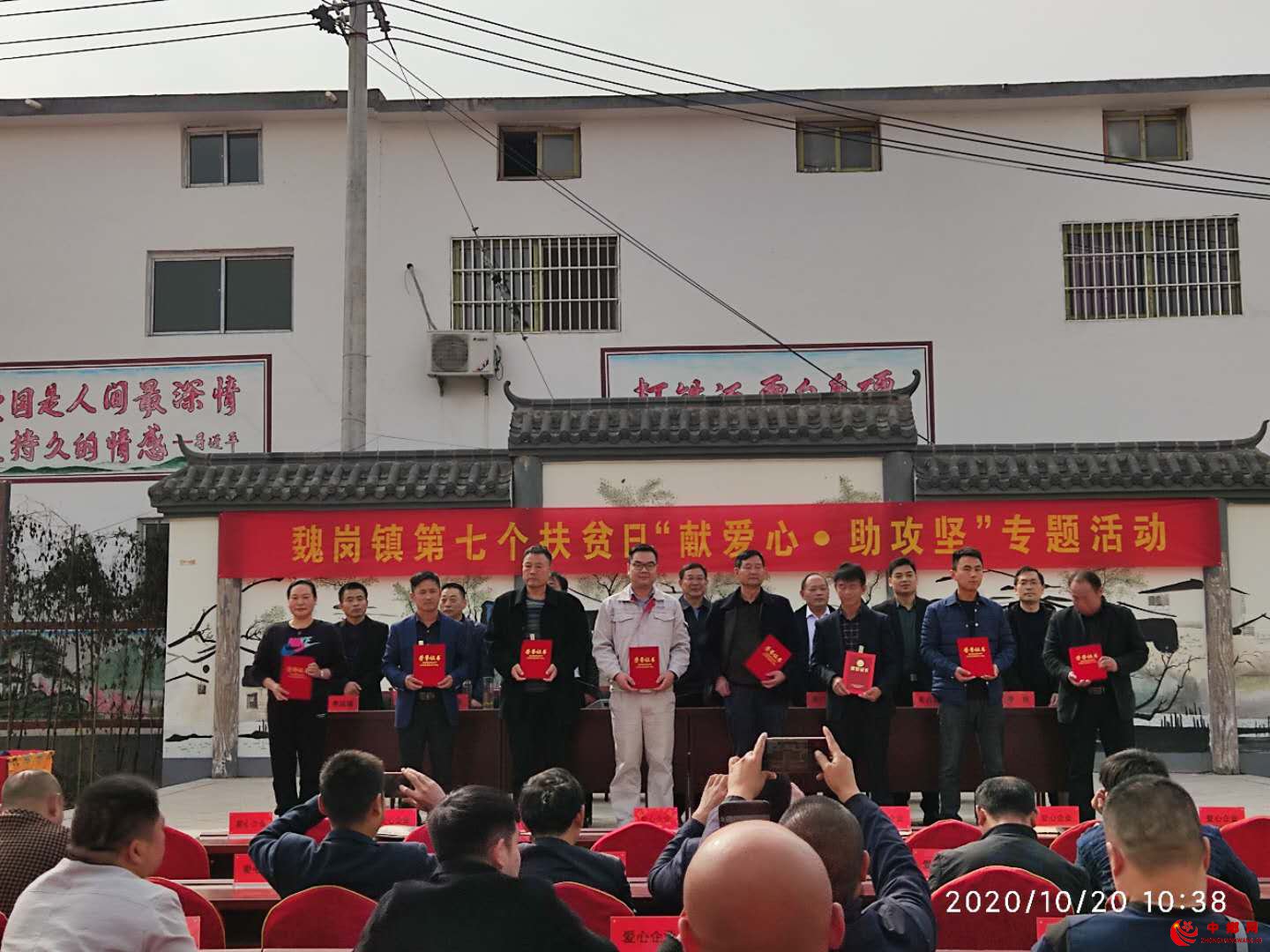 中乡网安徽讯 10月21日,魏岗镇组织开展第七个扶贫日“献爱心·助攻坚”专题活动,参加此次活动的有魏岗镇机关事业全体党员干部、各村(社区)书记、辖区内部分爱心企业。