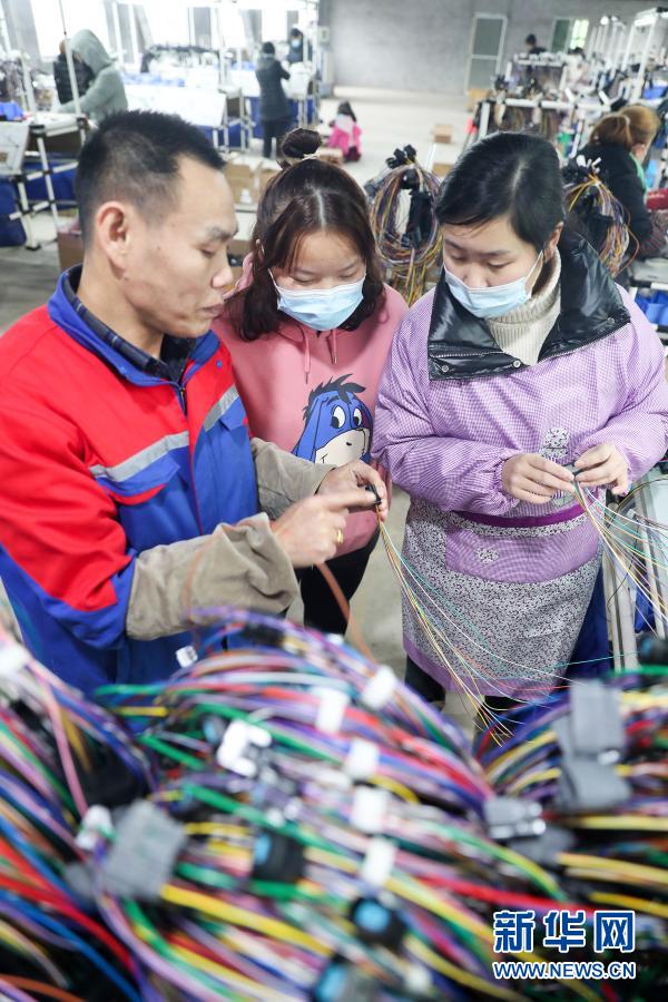 1月10日,华蓥市明月镇白鹤嘴村村民在“乡村微工厂”加工汽车线束。