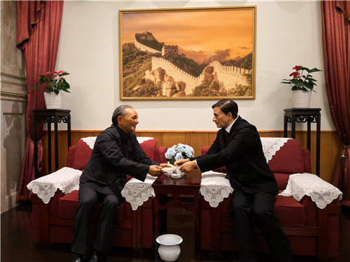 邓小平向纽交所总裁捐赠中国股票的场景。