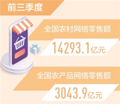 今年以来,我国农村电商呈现加快发展新态势。商务部发布的商务大数据监测显示,前三季度全国农村网络零售额14293.1亿元,同比增长16.3%;全国农产品网络零售额3043.9亿元,同比增长1.5%。