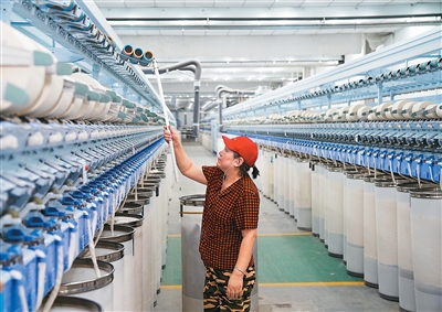 近年来,新疆乌苏市大力推进纺织产业转型升级,聚焦技术创新与设备更新,积极引入智能化生产线,推动纺织产业向高端化、绿色化迈进。图为乌苏市一纺织企业的车间内,工人在生产线上作业。 |