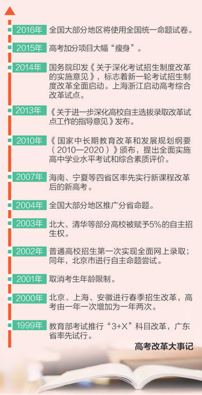 回看已然成为历史的2015年,高考改革的足迹串起了一年的大事记,也指引着中国教育未来的方向。