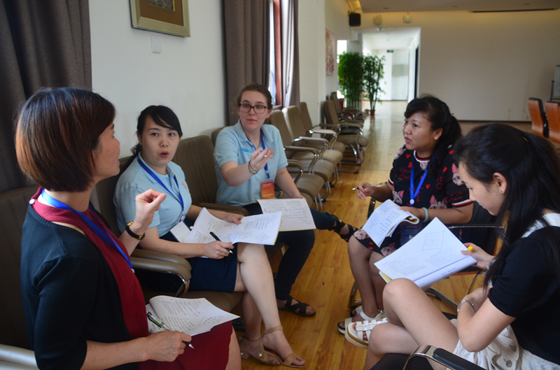 本次培训共分为四个小组,进行高强化口语训练、趣味化教学互动、跨文化亲身体演三个部分学习,培训学员体验到互动教学、小组讨论、电影欣赏、主题晚会、短剧、歌曲、游戏之夜、手工,跨文化体验欧美英语教学模式等。