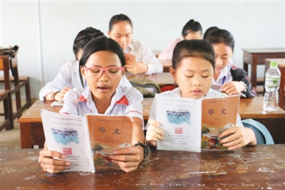 随着“一带一路”建设的推进,柬埔寨涌动“汉语热”。图为暹粒华文学校中山学校内的柬埔寨学生正在朗读中文。