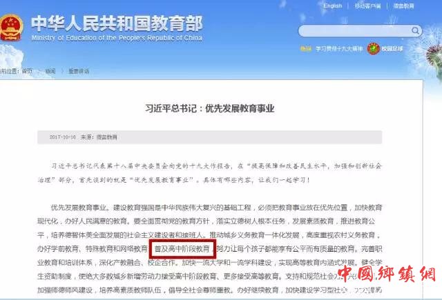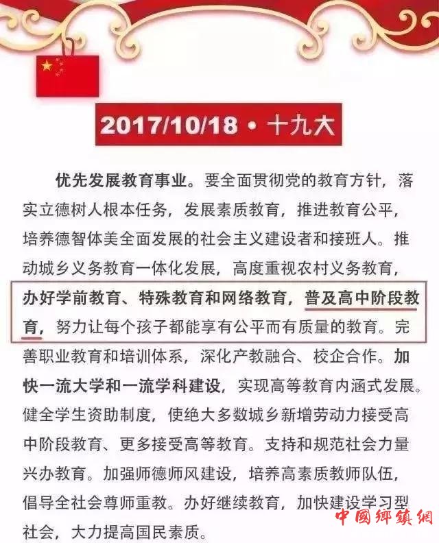 在十九大报告中,确实是明确提出普及高中阶段教育。