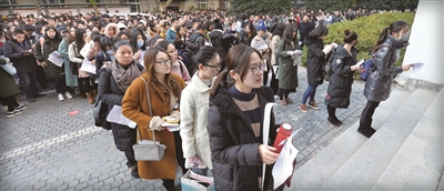 昨天上午8:30,记者在南京林业大学考点采访发现,一心参加公务员考试,全力准备“上岸”的考生可不在少数。“我们家学的是会计专业,但学校不咋地,是个本三,所以希望姑娘能够考上公务员,有一份稳定的工作。”家长朱女士站在南林教五楼门外,准备一直等到上午11:00女儿走出考场。“小孩没有找其他工作,之前的两个月一直都在复习国考。既然准备考,就要专心。”