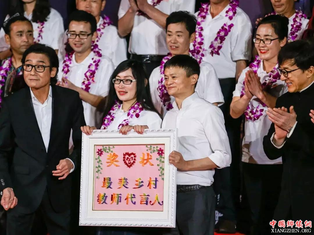马云和他的企业家、明星朋友上台为获奖的乡村教师颁奖