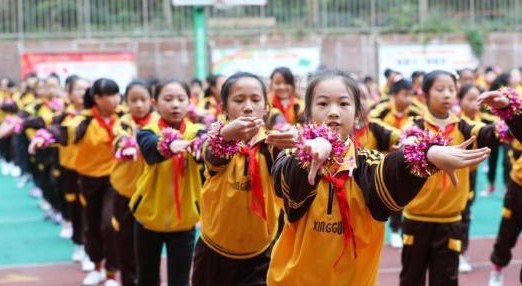 资料图:小学生在课间做戏曲广播操。中新社记者 贺俊怡 摄