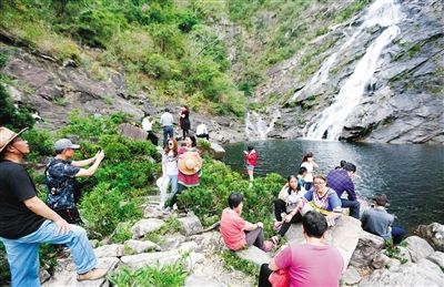 2月19日,游客在陵水大里瀑布游览。本报记者 武威 通讯员 陈思国 摄
