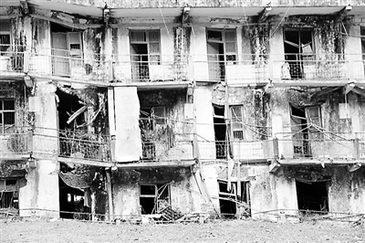 北川职业中学成为地震遗址的一部分,男生宿舍的栏杆上还留着当年逃生的一截床单