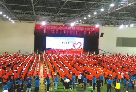 7月16日上午,2018年四川省大学生志愿服务西部计划出征仪式在成都师范学院温江校区举行,现场千余名西部计划大学生志愿者整装待发,他们即将奔赴基层,到祖国和人民最需要的地方去建功立业。