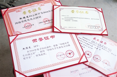其实,赵德龙作为优秀毕业生的代表上台发言,非常“够格”。3年来,一边上学,一边尽孝,赵德龙并没有因此耽误学业。他的学业成绩位居班级前列,通过了全国大学生英语四级、六级考试,他所在的科技创新团队荣获2015年全国大学生“小平科技创新团队”称号,参与的项目荣获2016年“创青春”河南省大学生创业大赛特等奖。