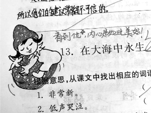记者看到,一本本语文作业或数学作业上,老师的评语不再是“优”“良”“√”“×”,取而代之的是一幅幅充满创意的简笔画,再配上老师的暖心话语。