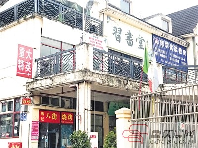 2月18日,记者来到巴南区巴县大道附近的宏源小区。根据地图导航,又问询了附近的居民和商家,记者来到热闹繁华的“华夏八街”。前不久,巴南区公布的校外教育培训机构“黑名单”上,位于华夏八街四号楼2-5的重大精英学校巴南分校位列其中。