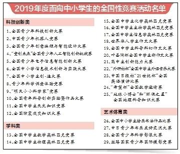 昨天教育部发布《关于公布2019年度面向中小学生的全国性竞赛活动的通知》,正式确定科技创新类、学科类、艺术体育类全国性竞赛活动共29项。