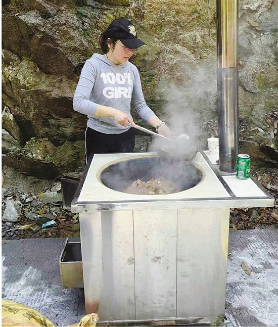 “我们的柴火灶台,采用全加厚不锈钢打造,美观大方,使用寿命长。灶台四脚采用万向轮设计,实现可任意移动,相对于固定的传统灶台更加干净卫生,卫生死角更好打理,户外野炊也可方便使用。 铁锅采用山东纯手工铸造的生铁锅,不会开裂,不会脱落,可承受1000多摄氏度高温持续燃烧,超厚的保温层也让不锈钢台面长时间燃烧也不烫手,让燃烧的热效率更高,更加得节能省柴。这就是中国传统的大铁锅,烧出菜的味道可香了。”作为老板的余文珂对自己的柴火灶产品可是做了很多功课,他说,“只有自己真正了解产品的品质,才能放心地将产品卖给别人。”