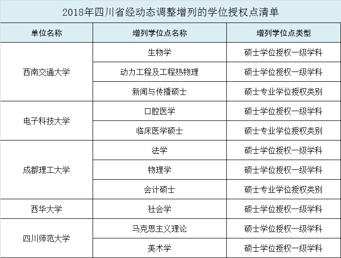 另外,共有28个省份的147所高校或单位增列218个学位点。其中,四川5所高校增列11个学位点。