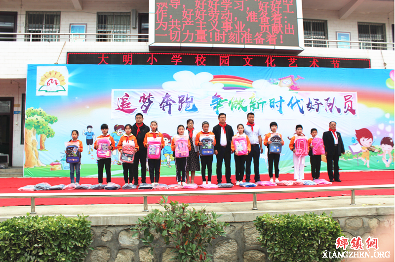 同时,镇党委政府也为部分贫困学生赠送了书包、文具以及运动器材,勉励他们从小立志向、有梦想,从小自觉培育和践行社会主义核心价值观,为日后成才打牢知识根基、立起品德支柱,为实现中华民族伟大复兴的中国梦,时刻准备着!。(特约通讯员: 张姗)