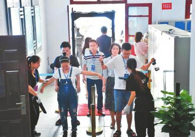 阅卷老师接受严格安检。本报记者肖雨杨摄
