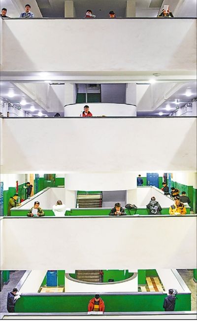 2020年全国硕士研究生招生考试将于2019年12月下旬举行,当前距离考试已不到20天。即将参加研究生招生考试的考生们,在高校教学楼、图书馆内复习背书。彼此或熟悉或陌生的考研学子相互陪伴,紧张的学习气氛和并肩奋斗的身影构成了校园里一道独特的风景。(刘帅冶摄)