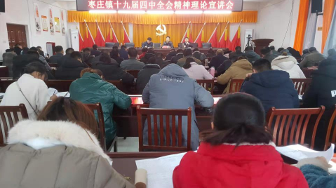 中乡网安徽讯 12月12日上午,安徽省阜阳市颍东区政协主席王建到枣庄镇开展学习贯彻党的十九届四中全会精神理论宣讲活动,枣庄镇全体党政干部、村、居书记、主任听取宣讲。