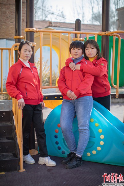 12月11日,大名县孙甘店镇幼儿园,(从左至右)志愿者教师张艳红、梁妹霞、李现花。她们从幼教专业毕业,90后李现花已经在这里工作了3年多。
