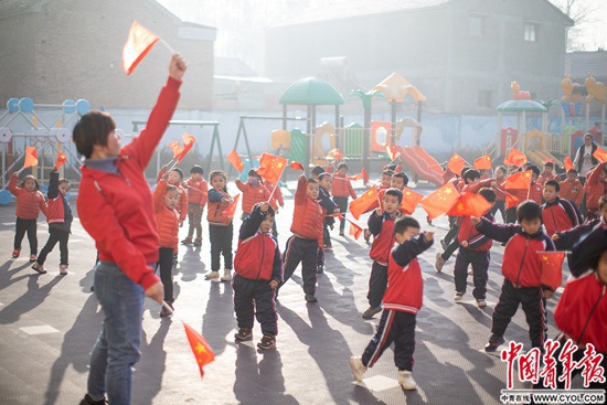 今年21岁的庞新冉毕业于当地师范院校的学前教育专业,也是县里的第一批志愿者教师。同批的80名志愿者教师中,现在选择留下的不足四分之一。庞新冉工作的赵庄村幼儿园离她家20公里,她只能和另外两名老师住在幼儿园内的临时宿舍,周边被大片农田包围,没有路灯。一天晚上,一位老乡在附近捡拾垃圾,脚步声吓得庞欣冉赶紧给园长打电话“求助”。同宿舍的两名老师都选择去离家更近的幼儿园教学,庞新冉也动了心思,回了老家。没过3个星期,乡里的领导来劝她回去。回到最初的幼儿园门口,孩子们从教室飞奔出来抱住她,“那一刻,我感觉到自己被需要。”庞欣冉说。
