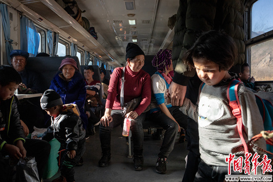 1月10日,慢火车上的乘客们。他们中有放假回家的孩子,有走亲访友的老人,也有外出打工的年轻人。