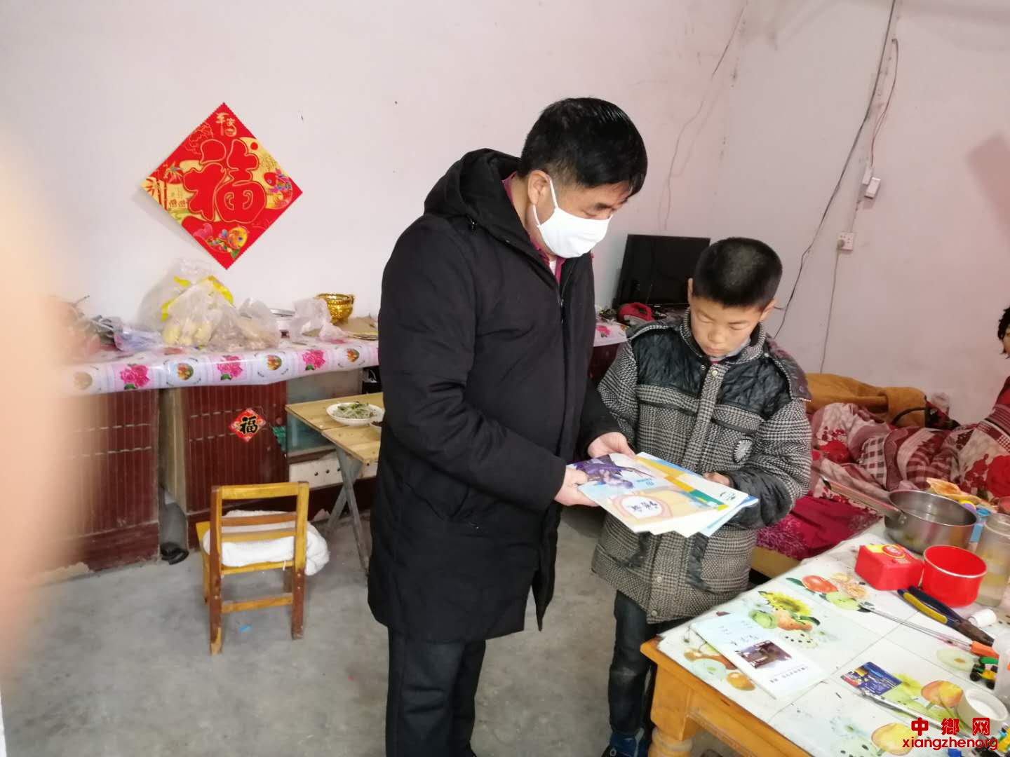 中乡网安徽讯 3月11日,安徽省亳州市谯城区古城小学共产党员、校长郭彬,又一次来到贫困户冯利峰家中,为其子冯金会辅导功课。古城镇油河村冯庄自然村建档立卡贫困户冯利峰,妻子王坤英智障,生活较困难。10岁的冯金会就读于油河小学三年级, 疫情期间,不能到校读书,为做到停课不停学,前几天,郭校长上门送去了课本,他依然放心不下,怕疫情耽误冯金会的学习,就再次登门,了解其家庭生活、检查冯金会的学习情况,为他解答学习中的难题。