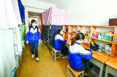 十二中学生宿舍住宿学生由六人一间调整为三人一间,保证每人活动面积在4平方米以上。