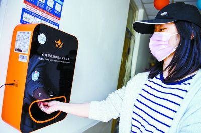 一零一中学的食堂宿舍等入口均加装手部消毒设备,方便师生进行日常消毒。