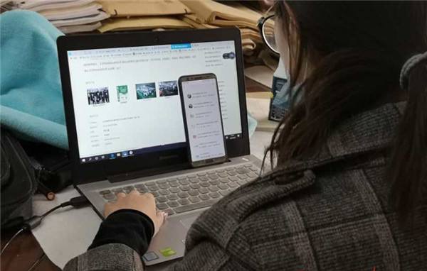 西北民族大学举办2020届毕业生春季线上双选会,一位毕业生正在浏览相关信息。 图片来源 中国甘肃网