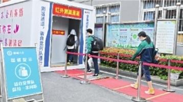 先步入红外体温检测通道,再到消毒区进行身体和双手消毒,继而按照指定通道进入教学楼,在教室进门处再次检测体温,每个班级门口还有一个装有“呕吐包”的医药箱,以便应急之需。20日,武汉大方学校初中部100多名初三学子返回心心念念的校园,入班至少“过五关”。