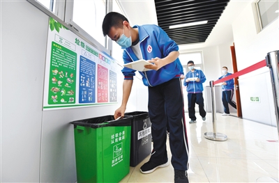 生活垃圾分类投放点设置是否合理;师生对生活垃圾分类知晓率、参与率;学校对垃圾分类知识的宣传普及情况……5月22日,二外附中“迎考”垃圾分类。