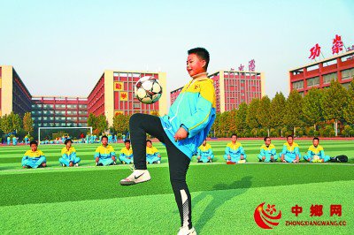 10月25日,河北省衡水市志臻学校安平校区,学生进行足球颠球项目比赛。本报记者 郭俊锋摄/光明图片