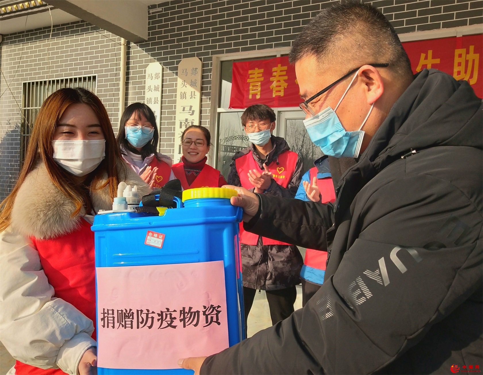 新年前夕,全国许多省市疫情再起,作为大学生志愿者应该怎么办?去年疫情期间,她们耳闻目睹了基层社区村居干部昼夜奋斗在防疫抗疫第一线十分辛苦。大学生志愿者就应该主动地站出来参与身边的防疫工作,贡献自己的一份力量。于是,在新疆大学王淑欣的组织发动下,身边附近的同学:曲阜师范大学的倪冉、山东财经大学的朱梓琪、德州学院的徐城、滨州医学院的徐佳、青岛科技大学颜宇辰(中途有事),共六名同学参加的助力社区防疫志愿者小组。每人分别拿出一二百元不等的勤工俭学补助和奖学金,购买了消毒喷雾器、紫外线消毒灯、消毒喷壶以及次氯酸钠消毒液等一批防疫物资,直接捐赠给了马头镇马南社区村居,助力家乡防疫工作。