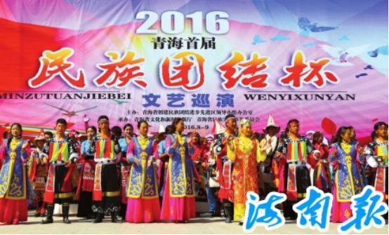 首届“民族团结杯”文艺巡演活动是2016年“创建民族团结先进区”活动的一项重要内容,旨在充分发挥优秀文化的引领作用,进一步激发全省各民族群众投身创建民族团结进步先进区的积极性、主动性和创造性,不断掀起全民参与、共建共享的社会热潮。此次巡演活动共组织演员80余人,8月20日启动,历时20天,行程4000余公里,分别在海东、海西、海北、海南等地进行了18场专场演出活动。巡演活动的节目紧紧围绕“民族团结”主旋律创作和精心编排,汇集了歌曲、舞蹈、曲艺、器乐、非遗等各种艺术类别,具有较强的地域性、民族性和时代性,并有较强的艺术感染力和观赏性。活动所到之处受到了当地群众的热烈欢迎,对促进全省各民族之间文化交流,打牢中华民族共同体意识,共筑各民族共有的精神家园起到了极大的促进和推动作用。