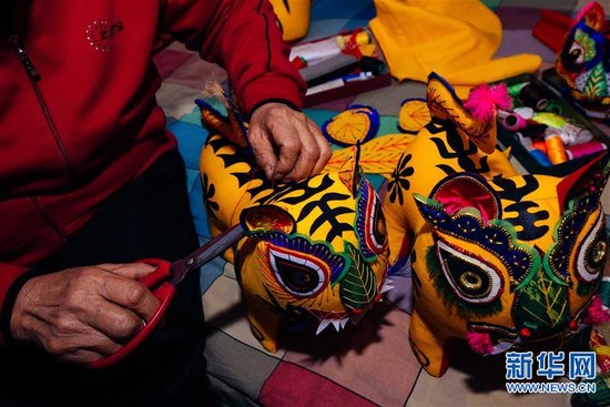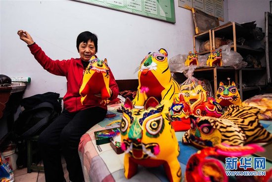 10月15日,黎城县农民高秋英在缝制黎侯虎。山西黎城的黎侯虎是国家级非物质文化遗产,因其造型憨态可掬,在民间又有赐福、镇宅、生财等文化内涵,成为游客们首选的旅游纪念品。