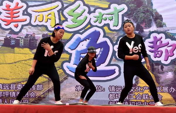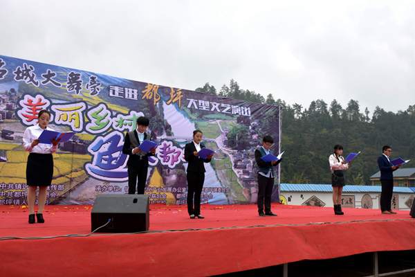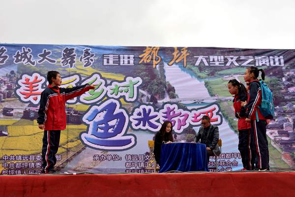 期间,整个活动紧紧围绕着都坪镇近年来的经济社会发展,分别从新农村变化、教育、交通、农业、卫生等各个方面,通过群众喜闻乐见的歌舞方式,表达了当地群众讲和谐树新风、创建国家卫生县城的愿望,也展现了他们勤劳致富、乐于助人、积极向上的良好精神风貌。有舞曲《走向新时代》《看了你一眼》、《眼睛是心灵的窗口》、《舞动中国》、《有个美丽的地方》,歌曲《恭喜发财》、《山妹子》,小品《沟通》,又有情景剧《我想有个家》等一共13个节目,均是由当地群众自编自导自演。其中,舞蹈表演《孔雀 badboy》引领现场观众从曼妙轻盈的舞姿中嗅到了一种高雅的艺术气息;《布谷鸟叫了》、《眼睛是心灵的窗口》充分展现了当地小朋友们活泼、可爱的一面。“我要的不是银行,我只想要一个家,有疼爱我的爸爸和妈妈……”情景剧《我想有个家》则演绎了农村留守儿童渴望关爱、渴望家庭温暖的真实故事,接近现实生活的背景,加上走心的表演,戳中了现场观众的泪点,圆满的结局是众望所归,更是赢得了在场观众的一致叫好。最后,活动在由都坪政府带来的诗朗诵《都坪颂》落下帷幕。