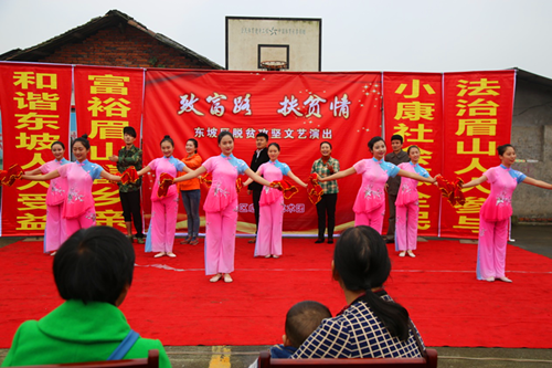 东坡区心连心艺术团现积极把主题“致富路 扶贫情” 的文艺演出呈现在东坡区全区各乡镇、村组,把我党精准扶贫的理念宣传到了全区每一个角落,让老百姓实际感受和理解精准扶贫的意义。