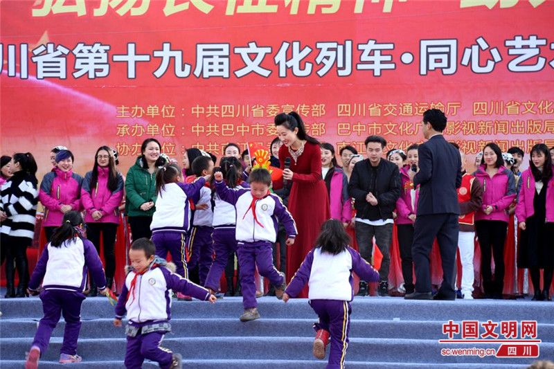 四川文明网巴中讯(罗园)12月26日,四川省第十九届文化列车·同心艺术团送文化下乡活动正式落下帷幕。本届文化下乡中,演出团走进了巴中市通江县、南江县、平昌县等多个县(区)的乡镇、村社,演出12场,行程1700多公里,为革命老区群众送去了最温暖的祝福。