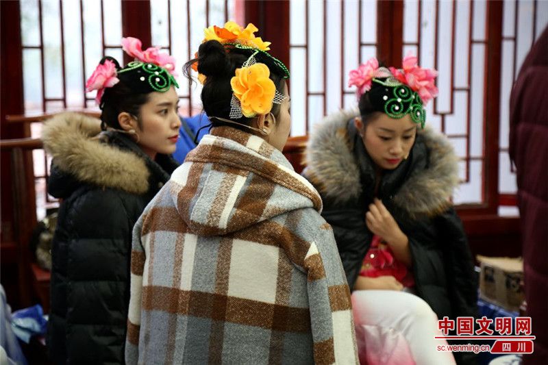演员们穿着单薄,坚持在舞台上,为群众带去欢笑和祝福。