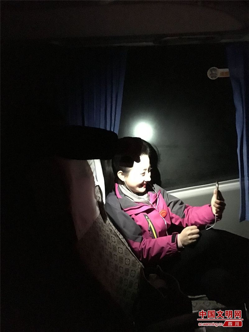 孙彦已经连续参加过很多届文化列车活动,在演出现场,她既是主持人,又是歌手。本届演出出发前两天,孙彦的父母从山西来成都看望她,但因为工作原因她没办法陪伴远道而来的父母。12月24日晚,正值平安夜,慰问团刚结束了当天的演出,从群乐镇赶回市区的路上,孙彦借着伙伴们手机上微弱的灯光与父母视频。