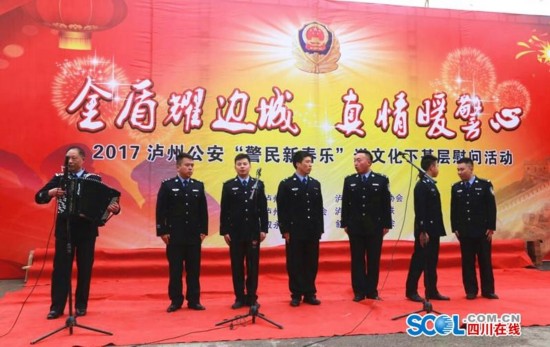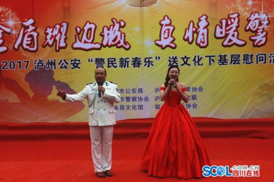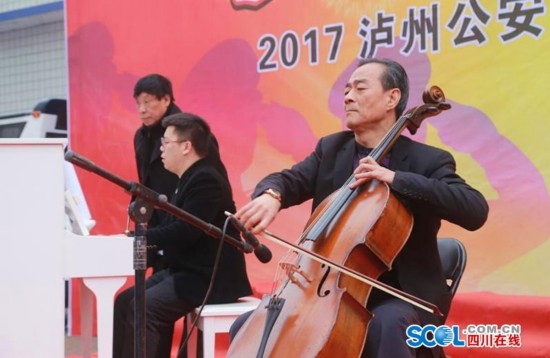 四川在线泸州消息(记者 蔡惠兰)1月18,由泸州市公安局,泸州市音乐家协会携手主办,古蔺县文联、县文化馆、县音乐家协会协办的,2017泸州公安“警民新春乐”送文化走基层活动第一场,在古蔺县公安局操场上拉开序幕,艺术家们用音乐表达爱的真情,在新年之始为公安干警送上一份别样的礼物。