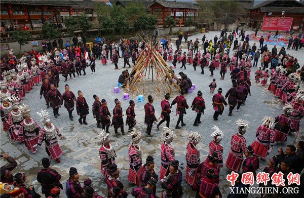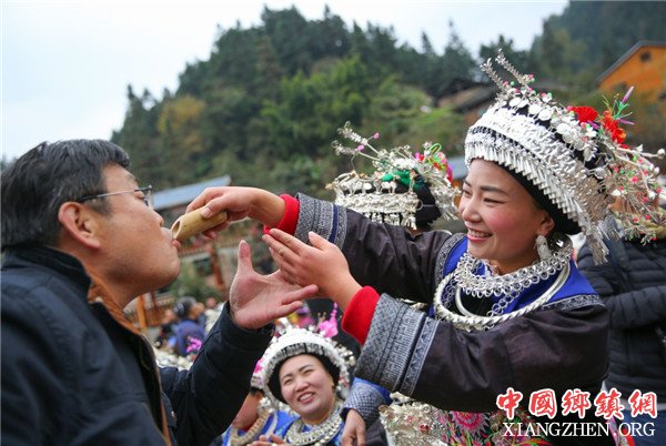 当日,贵州省黔东南苗族侗族自治州剑河县观么镇苗族同胞欢聚一堂,各家各户杀猪宰牛、下田捉鱼、备足米酒,邀约亲朋好友来到巫包村苗寨,通过踩芦笙、秀盛装、展示苗族传统婚俗等形式欢庆苗年。