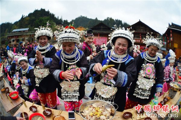 11月20日,在贵州省剑河县观么镇巫包村,苗族同胞在一起吃团圆饭。