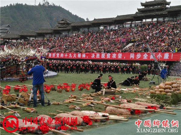 本网讯(记者 程天赐)11月23日,贵州黔东南苗族侗族自治州雷山县苗族同胞喜庆苗年,热闹非凡。苗年在每年秋收之后举行,是苗族最隆重的节日。