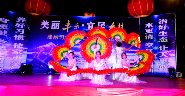 丰禾镇近年来在脱贫攻坚、振兴乡村、建设美丽丰禾、打造宜居乡村等战略中取得了一定成绩,但也出现了争当贫困户、强要低保、以贫困户为光荣、吃不上低保就没面子;垃圾乱扔、车辆乱行、口痰乱吐、房前屋后垃圾遍地等不良风气,为了弘扬正气,激发干部群众正能量,该镇精心谋划,周密组织了这台大型文艺汇演。整台晚会有舞蹈表演、歌舞、小品、说唱、快板、柔力球等。节目精彩纷呈,演员们轮番演绎了精心准备的文艺节目,为观众们献上了一场宣传除陋习、树新风的文艺盛宴。小品《文明出行》引发了人们的思考,从自己做起,文明出行。小品《低保》现实的演绎了当今社会的一些不良现象,激发了人们的正能量,教育群众勤劳创业、努力拼搏、自力更生过上美好生活,引起了观众强烈共鸣。独唱《祖国,亲亲你》、快板《共建家园》等12个节目,结合本地文化实际,乡土味道浓烈,博得在场观众的阵阵掌声和一致好评。