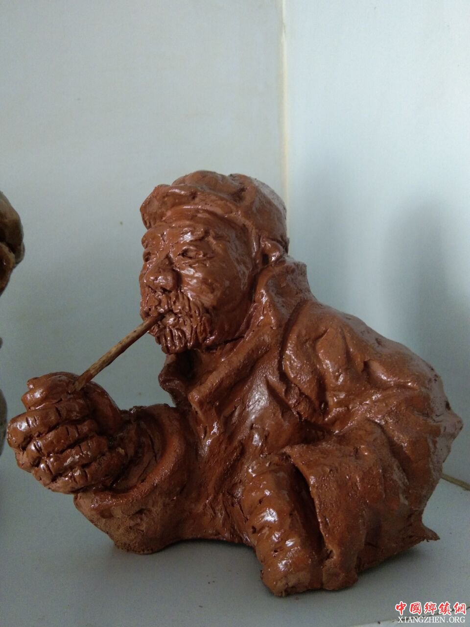 这幅泥塑作品,泥人王用手握旱烟,吸允着烟的香味,思考人生以及村情村务的朴实憨厚的老人来阐释上个世纪60年代的老支书形象。